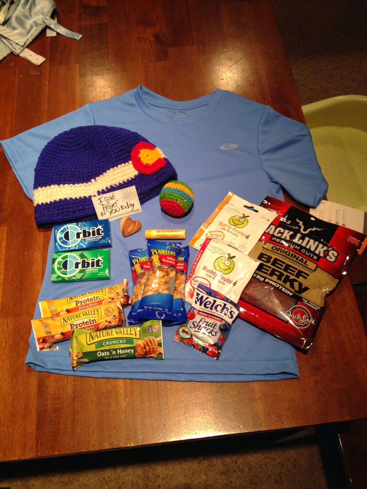 Okay, here is the package I sent the third year. Gone is the candy, replaced by as much protein as I could pack in. The gum is now sugar free and I think I got the size of shirt right that time…although that is always tricky. I packed a hat just like his brothers had here (and a picture of them in theirs) so he could feel connected to us. There is a small ball he can share with his friends, and a small wooden heart he can fit in his pocket and carry with him always. Some encouraging words topped off the package because those stick with a kid longer than any toy.
